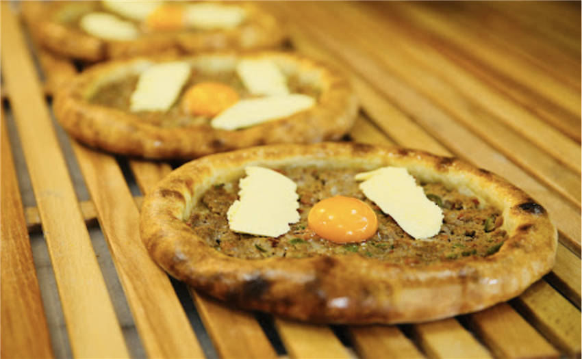 Koyun etinden yapılan kıyma ile hazırlanan “Etli Ekmek” ve bıçaklarla / satırla kesilerek küçültülmüş dana eti ile hazırlanan “Bıçak arası”, çok ince ve uzun açılmış mayalı hamurun üzerine serilir. Harcı hazırlanırken, çiğ et ile soğan (sadece etli ekmekte), bir miktar sebze karşımı (domates, maydanoz ve biberin değişik oranlarda karışımı) ve baharatlar ilave edilerek yoğurulur. Hamur ince ve çok uzundur. Bu şekilde açılan hamura harç olarak sadece kaşar peyniri ilave edildiğinde “Mevlana” adı sunulmaktadır.
