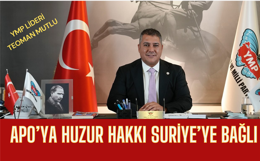 Yerli ve Milli Parti Lideri Teoman Mutlu, Suriye düzelmeden APO’ya umut hakkı verilmeyeceğini öne sürdü. Ak Partinin çok yavaş, çok temkinli ve çok tedbirli davrandığına işaret eden YMP Lideri Teoman Mutlu, Suriye tam düzelmeden umut haklarına ilişkin yasal düzenlemelerin yapıl...