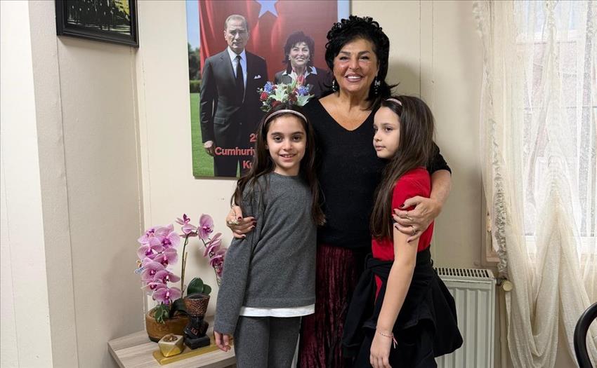 Öğrencilerin sorularını cevaplandıran Aylin Keserkaya, onlarla neşeli vakit geçirdi.